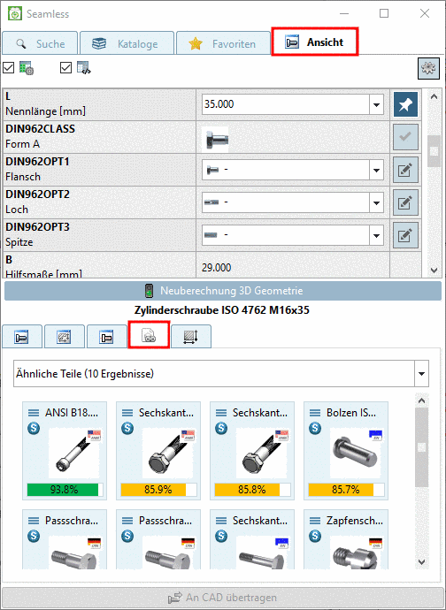 Das Dockingfenster Verweise enthält Verweise zu artverwandten Bauteilen.