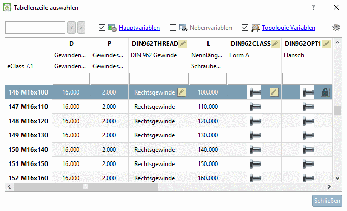 Variablen verwenden. Klicken Sie hierzu auf den Button Tabelle anzeigen.