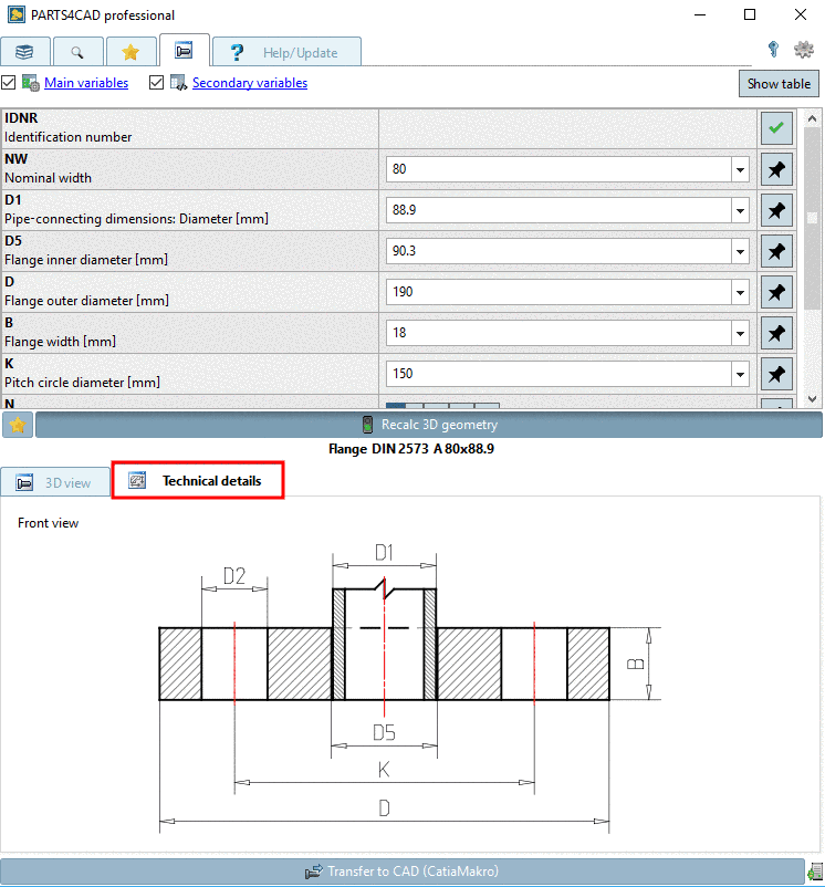 In PARTS4CAD, select the part which should replace the original one. (In this example a longer screw of the same project.)