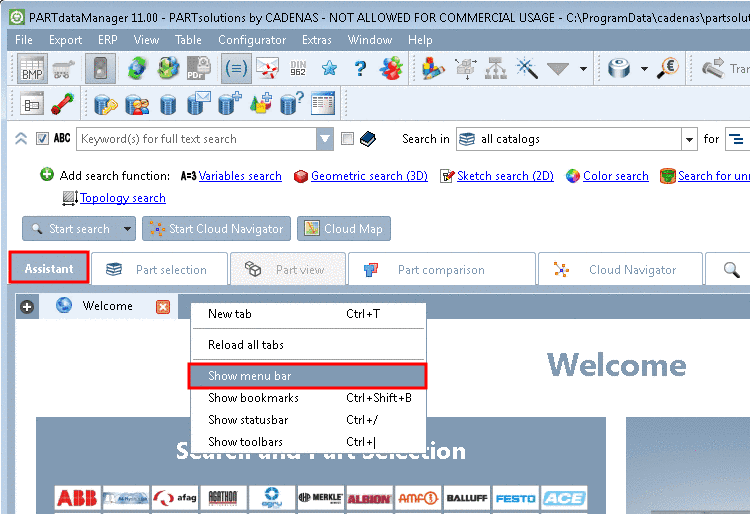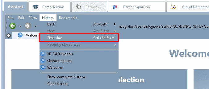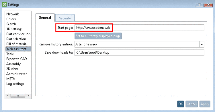 The settings of the Start page can be found under PARTdataManager -> Extras menu -> Settings... -> Web assistant -> tabbed page General.