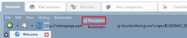 Here you can set bookmarks for example and display certain websites (e.g. your company site or specific subpages from it) within PARTdataManager.