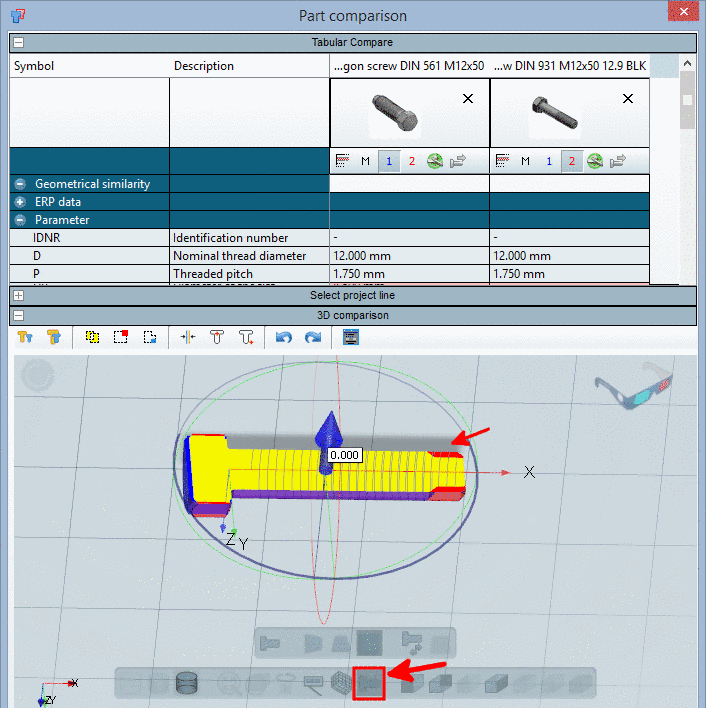In the Part comparison, in the Sectional view, you can optimally view part differences.
