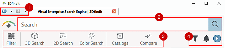 Anzeigebereich für jeweils gewählte Suchmethoden und Filter
