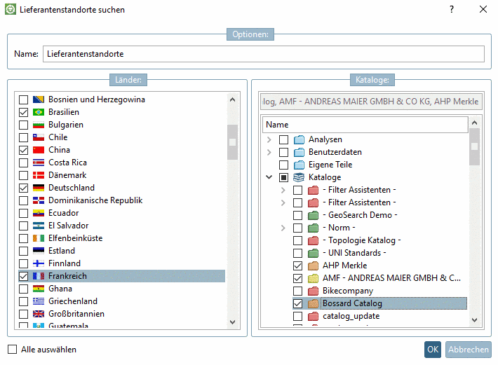 Aktivieren Sie sowohl in der Kategorie Länder, als auch in der Kategorie Kataloge die gewünschten Auswahlkästchen und bestätigen Sie mit OK.