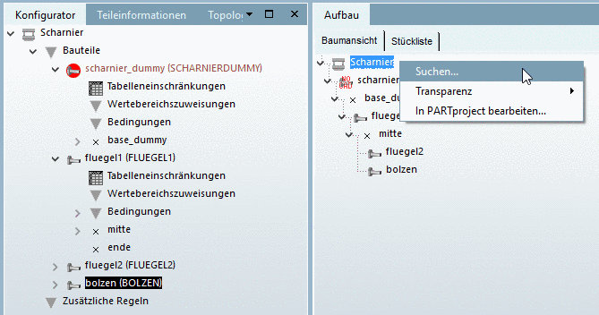 Die Suche soll Ihnen das Finden von Bauteilen, Anfügepunkten und Fehlern in großen Baugruppen erleichtern.