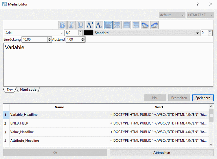 Eine detaillierte Beschreibung zum Media Editor finden Sie unter Abschnitt 10.6, „Media Variablen im Media Editor bearbeiten“.