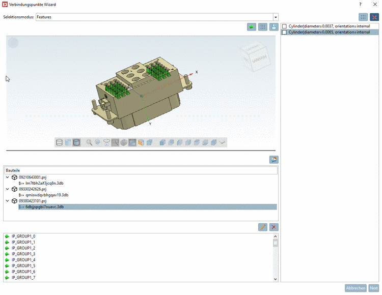 Es kann dann mittels eine Teileübergabe an das CAD-System erfolgen oder zunächst die Registerseite Bauteilvergleich geöffnet werden. Hier kann sowohl eine textuelle, wie auch 2D/3D Überprüfung erfolgen und dann das Bauteil an das CAD-System übergeben werden.
