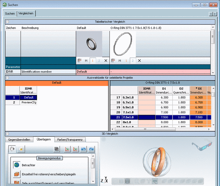 Wenn Verzeichnisse oder Projekte lediglich verschoben wurden, sind im Dialogbereich Zeilenzuordnung (rechts) keine spezifischen Änderungen zu sehen.