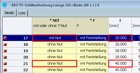 Auswahl in der zugehörigen Tabelle dimensioniert sein wird.