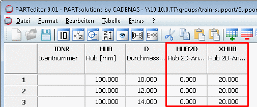 Bei Änderungen von Werten in der Tabelle können diese im Vergleich direkt betrachtet werden.