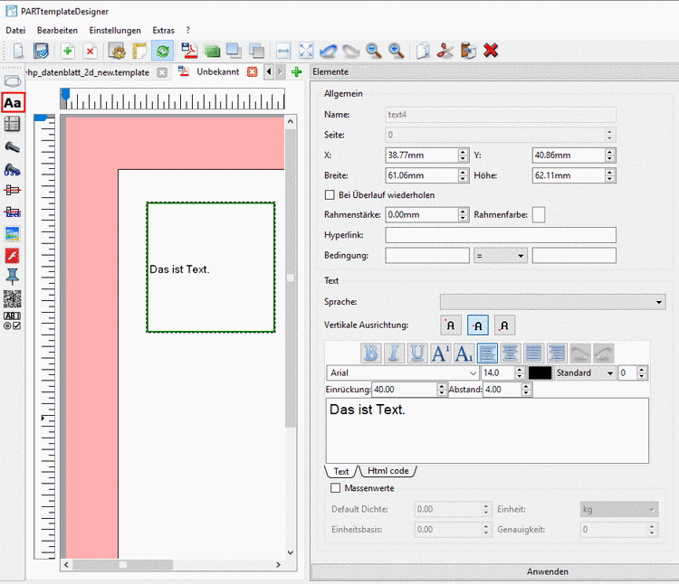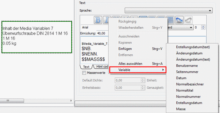 Es können auch Variablen als Text eingesetzt werden: