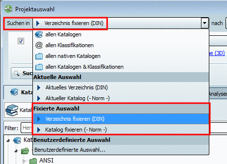 Aufruf auf Projektebene auf allen Registerseiten (Kataloge, Klassen, Suche, Favoriten, Verlauf, Analysen)