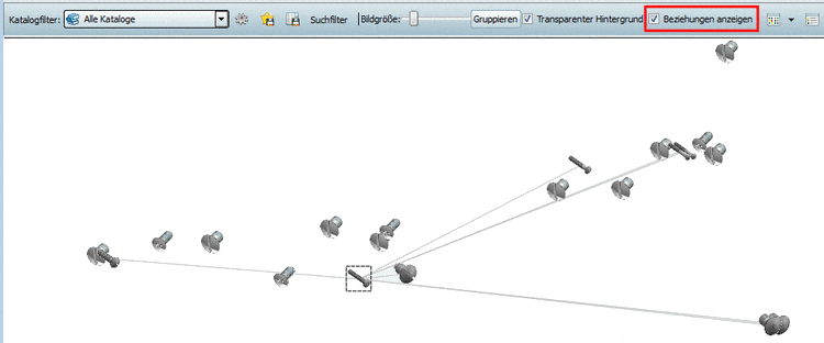 Werden die Ergebnisse im Cloud Navigator klein gezoomt, um alles in der Übersicht betrachten zu können, ist das Einblenden der Bauteilinformationen in groß hilfreich. Bewegen Sie hierzu den Mauscursor über das gewünschte Bauteil.