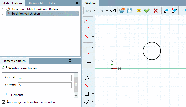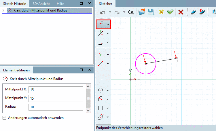 Zeichnungselement mit Hilfe eines Vektors verschieben