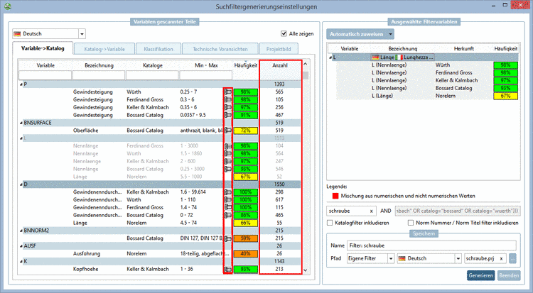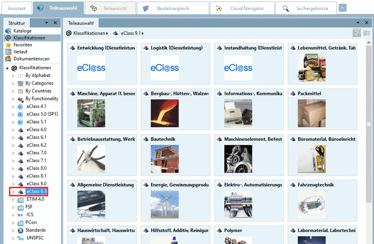 Wenn ein Katalog nach Lieferländern klassifiziert wurde, kann in PARTdataManager danach gefiltert werden. Je nach Auswahl ändert sich die Anzeige in Strukturbaum (und Tabelle).