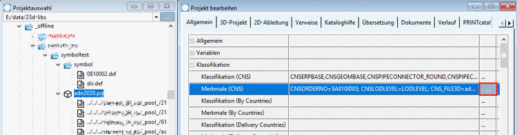 Öffnen Sie nun Merkmale (CNS) per Klick auf den Durchsuchen-Button .
