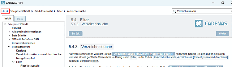 .Vor und Zurück in Sinne des Aufbaus des Inhalsverzeichnisses gelangen Sie über die Buttons und .