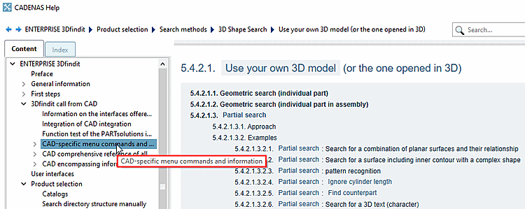 3Dfindit rufen Sie die Onlinehilfe im CAD-System im ENTERPRISE-3dfindit-Menü bzw. in der