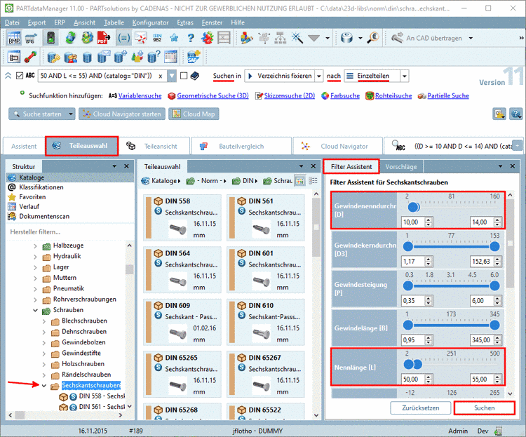 Die Katalogbezeichnung wird beispielsweise in den Teileinformationen unter Firma angezeigt.
