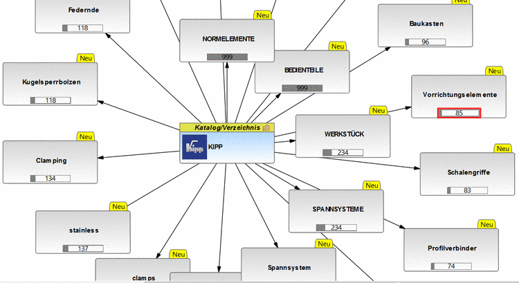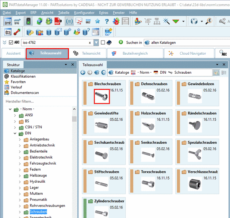 Mit Klick auf einen Link wird das Teil in der Teileauswahl, in der Klassifikationsstruktur geöffnet.