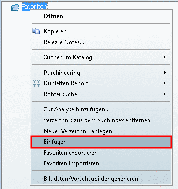 Häufig benötigte Verzeichnisse oder Projekte können Sie über den Kontextmenübefehl Zu Favoriten hinzufügen auf der Registerseite Favoriten abspeichern.