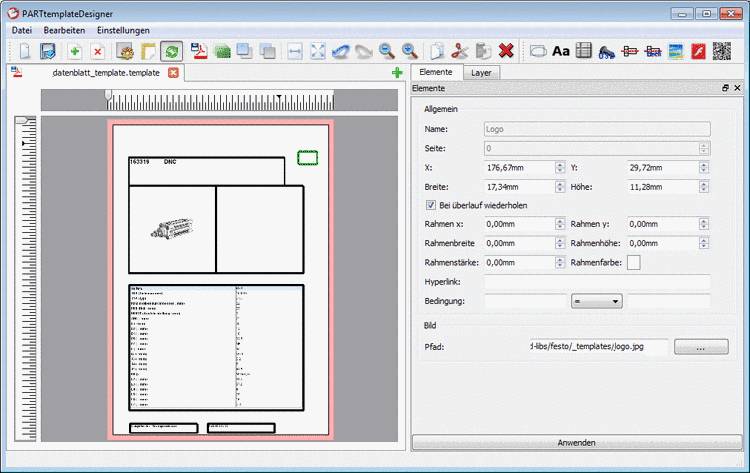 Kapitel 10. PARTtemplateDesigner - Datenblätter erstellen