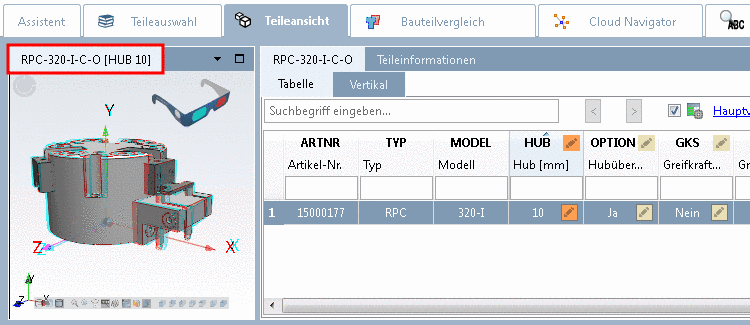 Im PARTdataManager erkennen Sie die NB und LINA schnell und einfach an den Titelzeilen der Tabelle und der 3D-Ansicht: