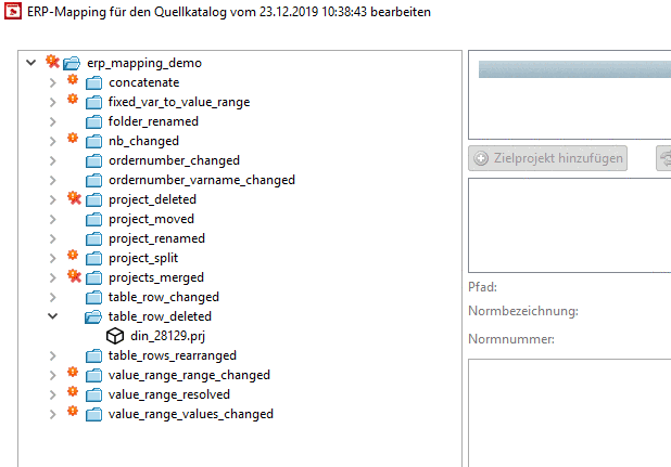 Selektieren Sie Zeilen ohne zugeordnetes Zielprojekt -> Rechts wird keine Tabelle angezeigt.