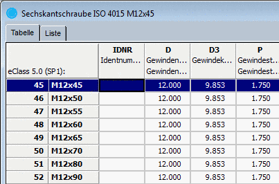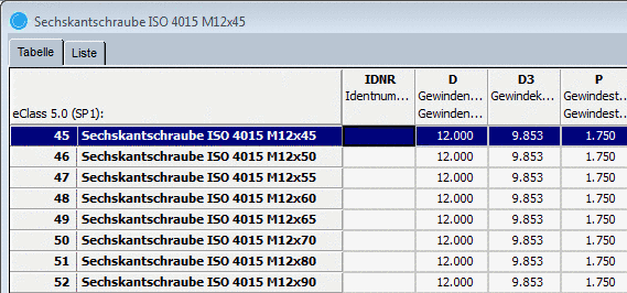 Im nebenstehenden Beispiel die Spalte mit "M12x45", "M12x50", etc.
