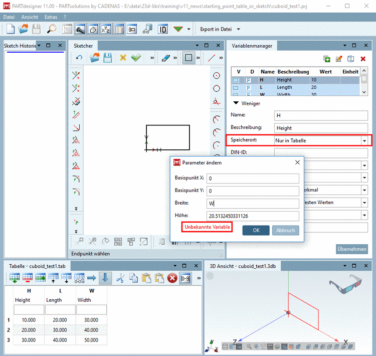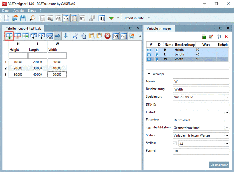 Öffnen Sie hierzu aus PARTproject heraus die 3db-Datei. Die Variablen werden automatisch aus der verknüpften (gleichnamigen) tab/tac-Datei übernommen.