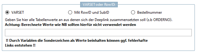 Wählen Sie eine Option aus VARSET | Mit RowID und SubID | Bestellnummer.