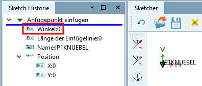 Ausgangssituation im Sketch: Der Anfügepunkt am zu bewegenden Bauteil wurde standardmäßig mit einem Winkel von 0° gesetzt.