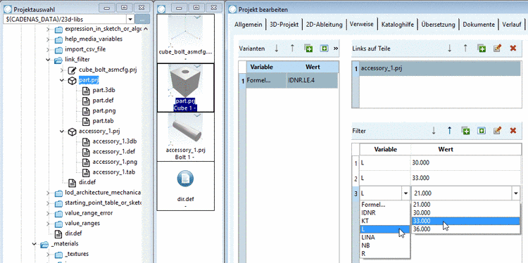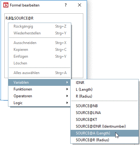 -> Die Variablen des Quellteils und des Zubehörteils werden angezeigt.