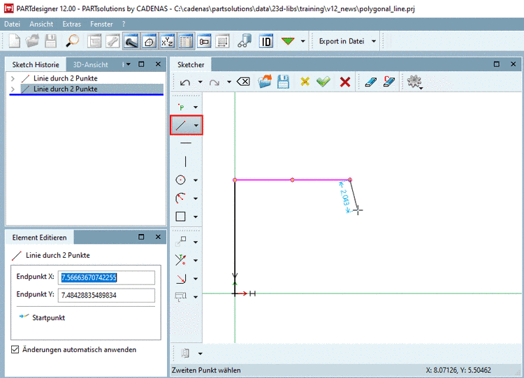 zugefügt markiert (erst beim Commit wird das Element tatsächlich