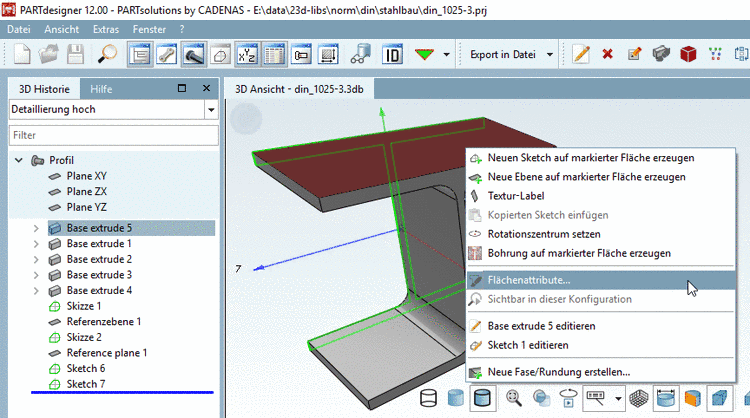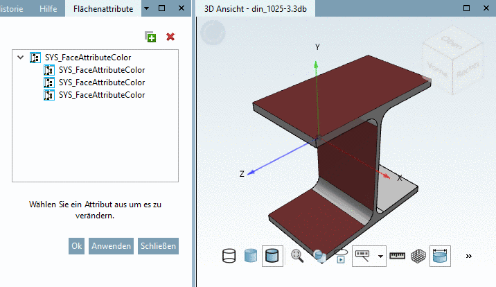 Diese werden auch im PARTdesigner angezeigt. Zusätzlich können einzelne Flächen anders eingefärbt werden.