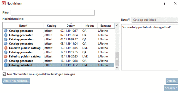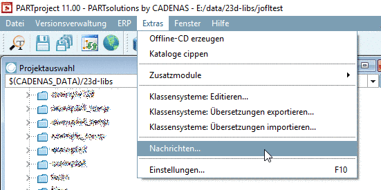 Um die Nachrichten zu sehen, klicken Sie im Extras-Menü auf den Menüpunkt Nachrichten....
