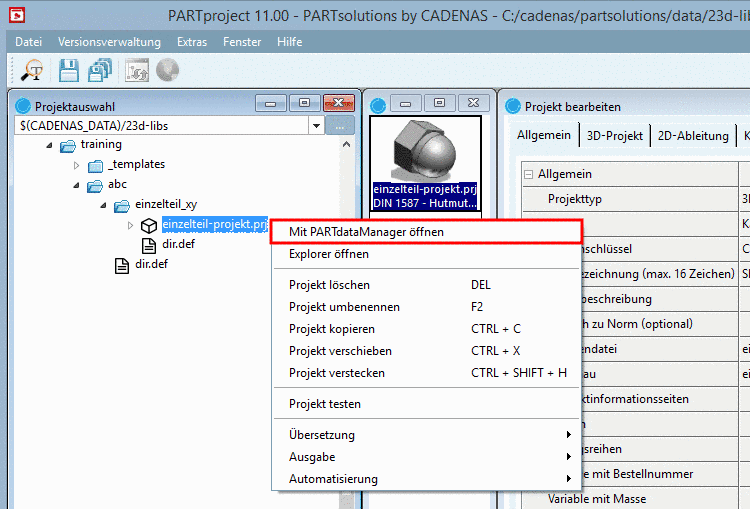 Klicken Sie den Kontextmenübefehl Mit PARTdataManager öffnen.