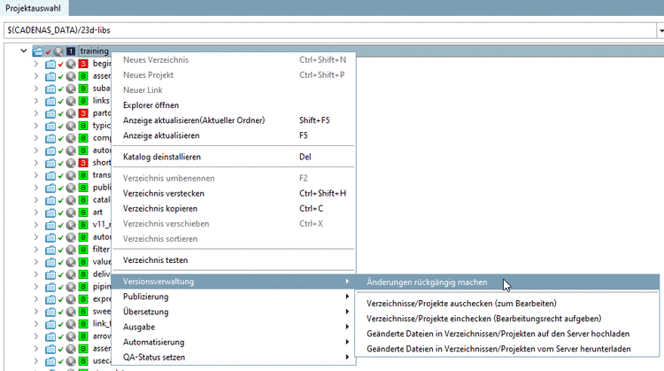 Unter Versionsverwaltung findet sich der Befehl Änderungen rückgängig machen. Damit werden alle lokalen Änderungen rückgängig gemacht (also die lokalen Dateien wieder auf den Stand gesetzt, der bereits auf dem Server eingecheckt ist). Die lokalen Änderungen können Sie anhand der roten Häkchen prüfen.