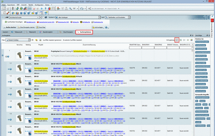 geeignet ist dieser Modus auch für die Suche in Eigenteilkatalogen, da oft heterogene Teile