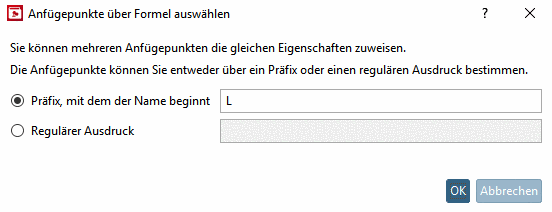 Bei Produkten mit verschiedenen Klassifikationen für Gruppen von Anfügepunkten empfiehlt sich die Verwendung der Funktion Anfügepunkte über Formel auswählen, wobei Sie diejenigen Anfügepunkte, die Sie gleich klassifizieren wollen, mit demselben Präfix benennen.
