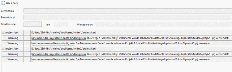 Siehe Abschnitt 5.8.2.1.12, „Projekt testen / Verzeichnis testen“ -> Normbezeichnung auf Eindeutigkeit testen.