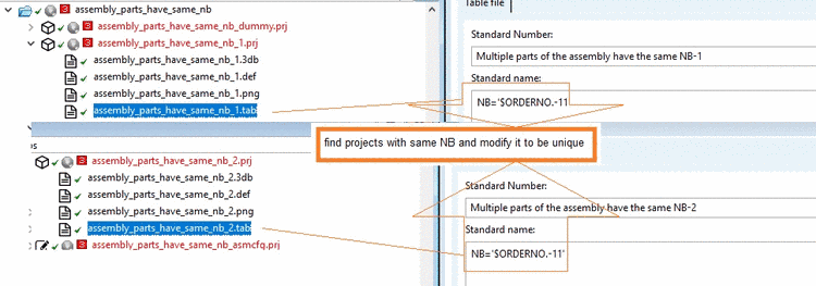 Problem: Mehrere Teile der Baugruppe haben denselben NB.