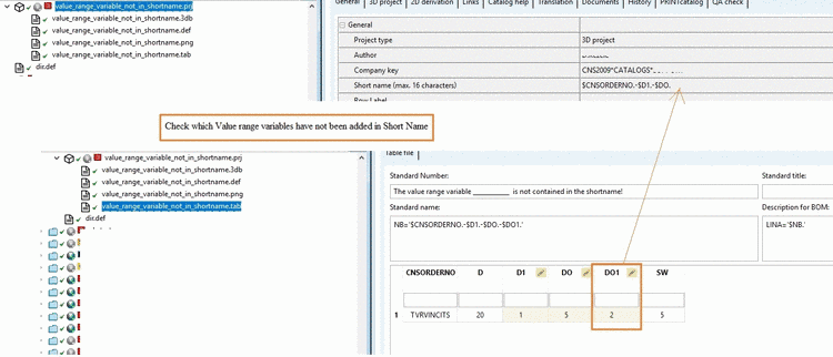 Lösung: Schließen Sie alle Wertebereichsvariablen der Projekttabelle unter Kurzbezeichnung (max. 16 Zeichen) ein.