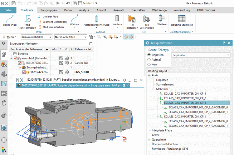 NX Routing Electrical unterstützt das Gruppieren mehrerer Terminals (Pins) in einem Multiport (Mehrfachanschluss).