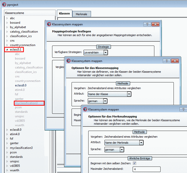 Führen Sie mit dem Levenshtein-Algorithmus und den Einstellungen Attribut: Name der Klasse und Attribut: Name der Merkmals das Mapping durch.