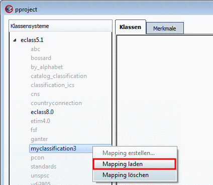 Klicken Sie im Kontextmenü Ihres Klassensystems auf Mapping laden.