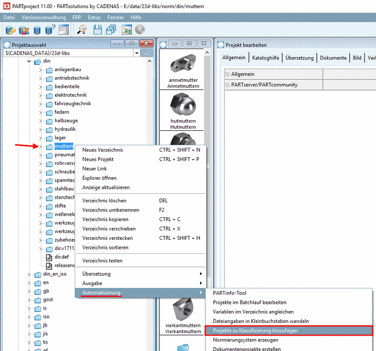 PARTproject -> Extras Menü -> Zusatzmodule -> Klassensysteme mappen...