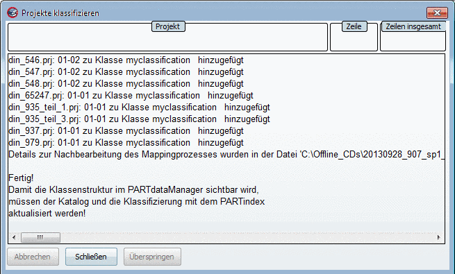 -> Der Prozess wird im Dialogfenster Projekte klassifizieren protokolliert.
