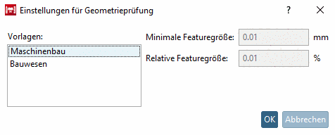 -> Das Dialogfenster Einstellungen für Geometrieprüfung wird geöffnet.
