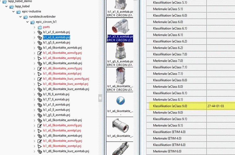 Für den Export nach Zuken wird auch eine Teileklassifikation nach eClass benötigt (mindestens V9.0 oder höher, am besten v10.0).